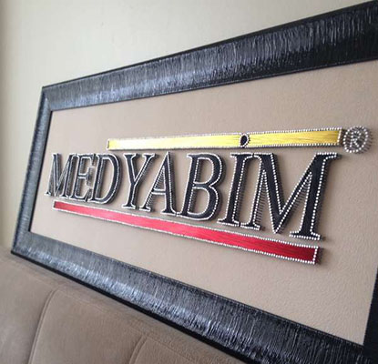 Logonuzun renklerinde yapılmış istenen ölçüde el yapımı filografi tablo