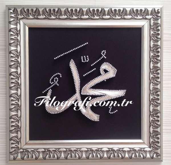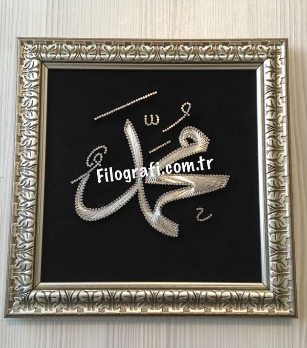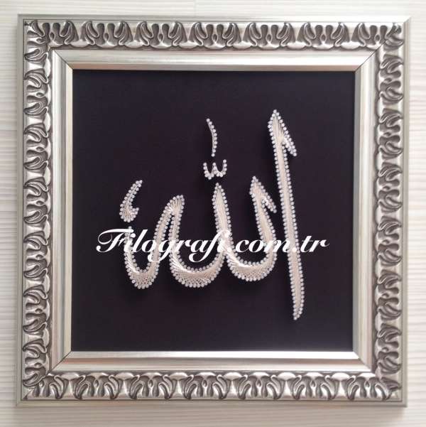 Allah Muhammed Lafzı desenli el yapımı filografi tablo
